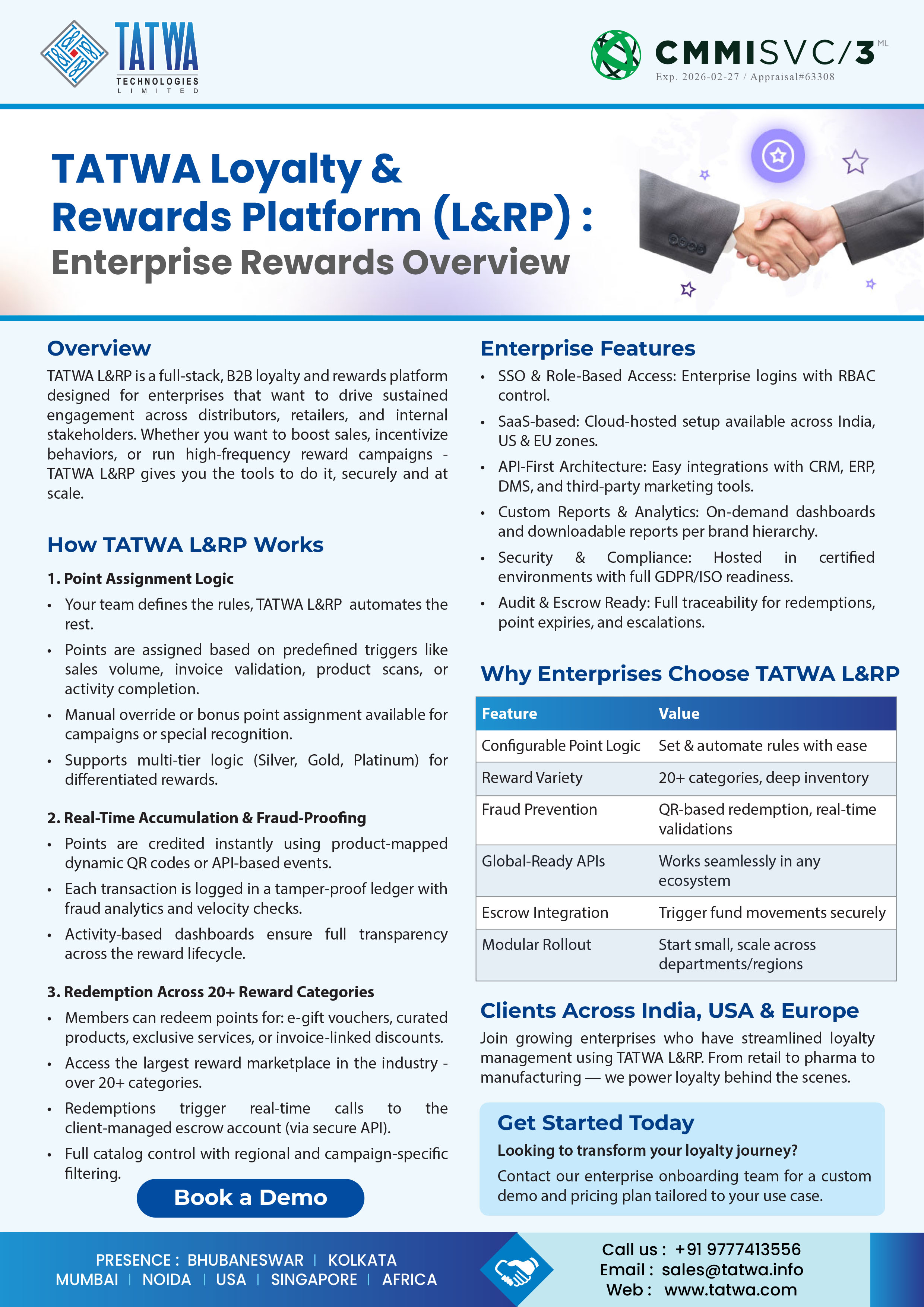 TATWA is a full-stack, B2B loyalty and rewards platform designed for enterprises that want to...