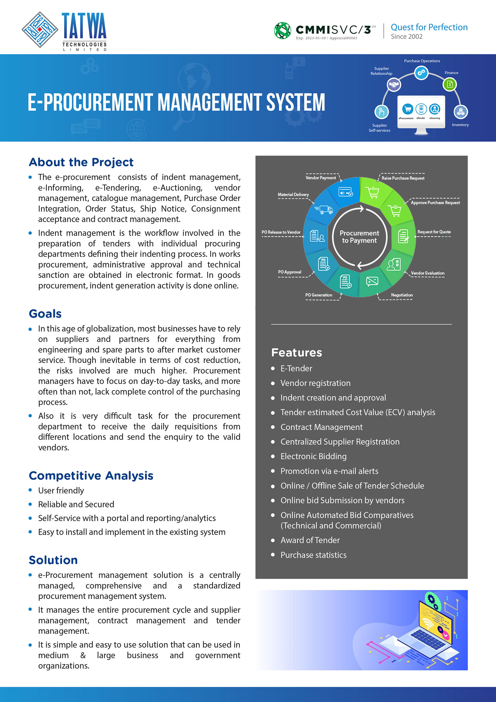 Tatwa’s e-Procurement management solution is a centrally managed, comprehensive....